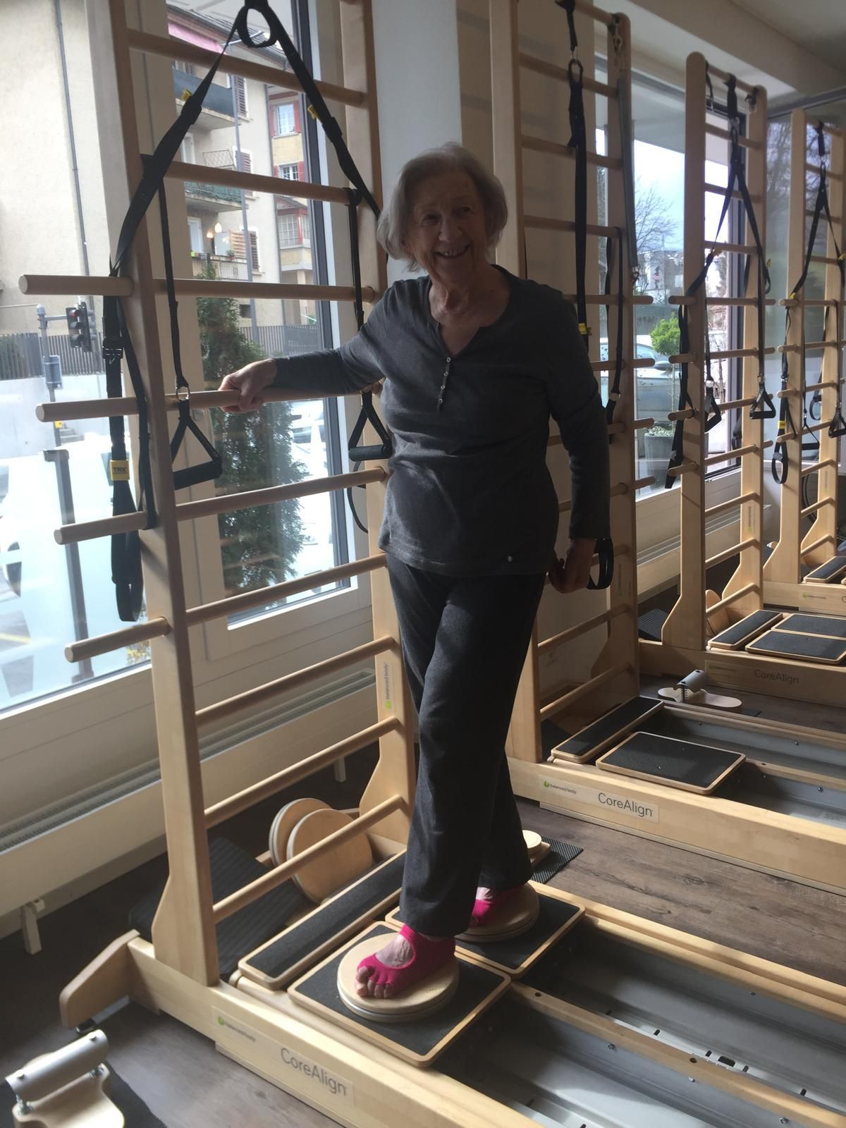 „Noch nie habe ich eine so gute Physiotherapie gesehen Mit CoreAlign, Man arbeitet mit dem ganzen Körper und nicht mit Fitness-Maschinen, die nur einzelne Muskeln trainieren. Hannah erklärt mir die Übungen auch sehr gut. Ich bin begeistert!"